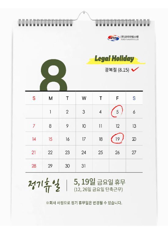 코리아텅스텐 2022년 8월 정기휴무 안내