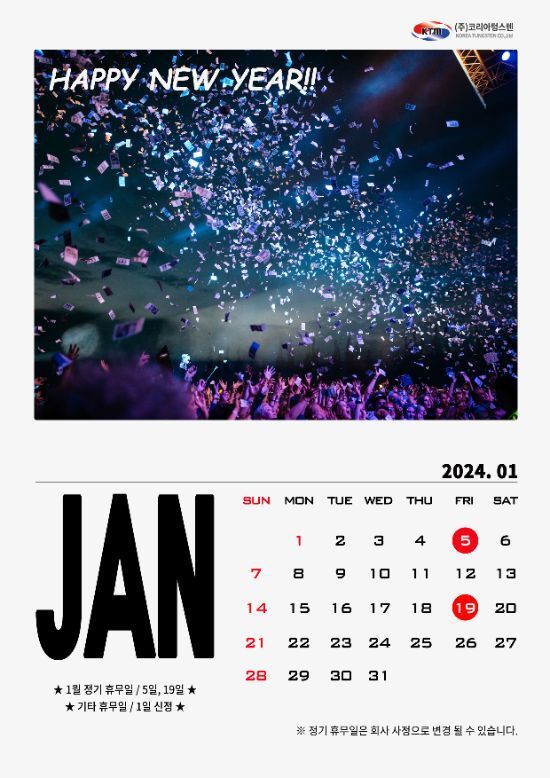코리아텅스텐 2024년 1월 정기휴무 안내