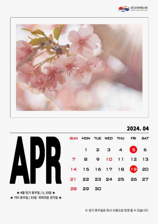 코리아텅스텐 2024년 4월 정기휴무 안내