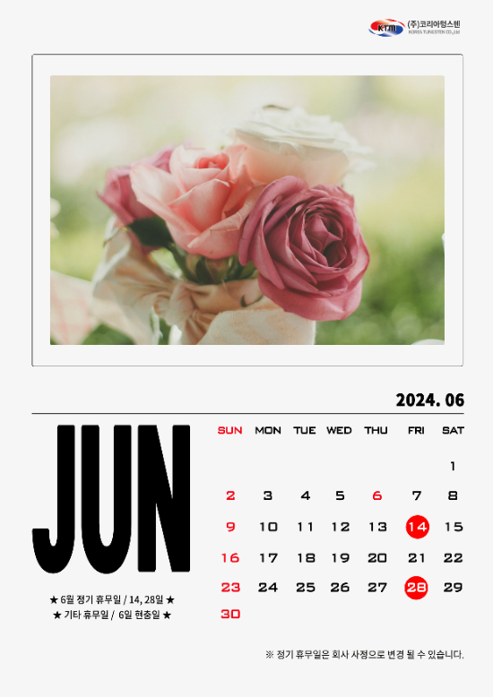 6월 코리아텅스텐 정기 휴무일 안내드립니다.