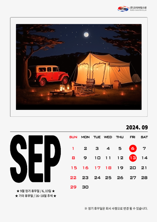 코리아텅스텐 2024년 9월 정기휴무 & 추석 연휴 안내