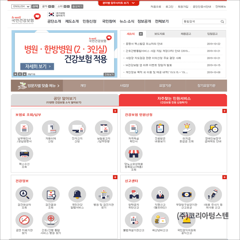 국민건강보험 홈페이지(https://www.nhis.or.kr/retrieveHomeMain.xx)에